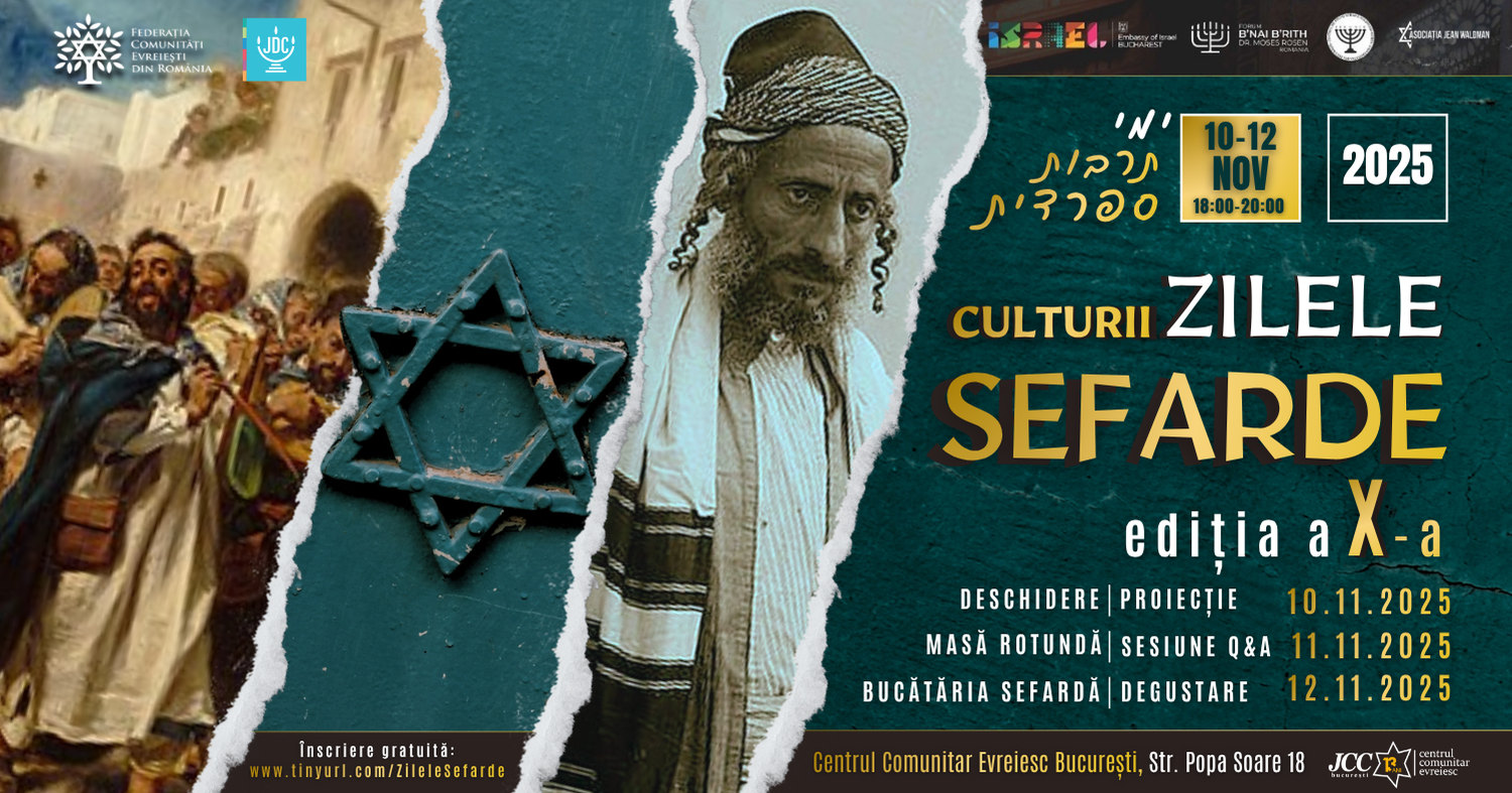 Programul festivalului, luni, 10 noiembrie 2025 18:00-18:20: Deschiderea celei de-a X-a ediții a Zilelor Culturii Sefarde, în prezența E.S. Dl. Lior Ben Dor, Ambasadorul Israelului la București 18:20-20:00: Proiecția filmului Jaffa Stories, regia Matti Harari și Arik Lubetzki, Israel, 2025, o comedie spumoasă, în stil clasic israelian, despre onoare, dragoste, dorință, rivalitate, răzbunare și toate celelalte aspecte la care te poți aștepta de la viața de gangster (v.o. ebraică, cu subtitrare în limba română; 100 minute). Programul festivalului, marți, 11 noiembrie 2025 18:00-19:30: Masă rotundă cu tema „Ascensiunea și declinul culturii Ladino – ce a mai rămas” Participă: Felicia Waldman – conf. la Centrul de Studii Ebraice „Goldstein Goren”, Facultatea de Litere a Universității din București, președinta Forumului B’nai B’rith România și Anca Tudorancea – lector la Centrul de Studii Ebraice „Goldstein Goren”, Facultatea de Litere a Universității din București și secretar științific la Centrul pentru Studiul Istoriei Evreilor din România al Federației Comunităților Evreiești din România. Programul festivalului, miercuri, 12 noiembrie 2025 18:00-19:30: Demonstrație de bucătărie sefardă: un show delicios cu Chef Ivet Acu Guney (Turcia/Suedia), cercetătoare a culturii culinare evreiești și expertă în istoria bucătăriei sefarde, fondatoare a Las Manos Cooking Class; Ivet va pregăti în fața publicului preparate specifice, explicând istoria, semnificația și interacțiunea lor cu alte bucătării balcanice și mediteraneene. Cu degustare.